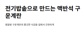 - 전기밥솥의 **만능찜 기능(약 50분)**을 활용하면 찜질방 스타일의 맥반석 계란이 완성됩니다.