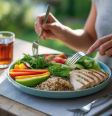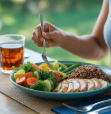 - 단백질(계란·두부·생선) + 섬유질(샐러드·통곡물)을 함께 먹기