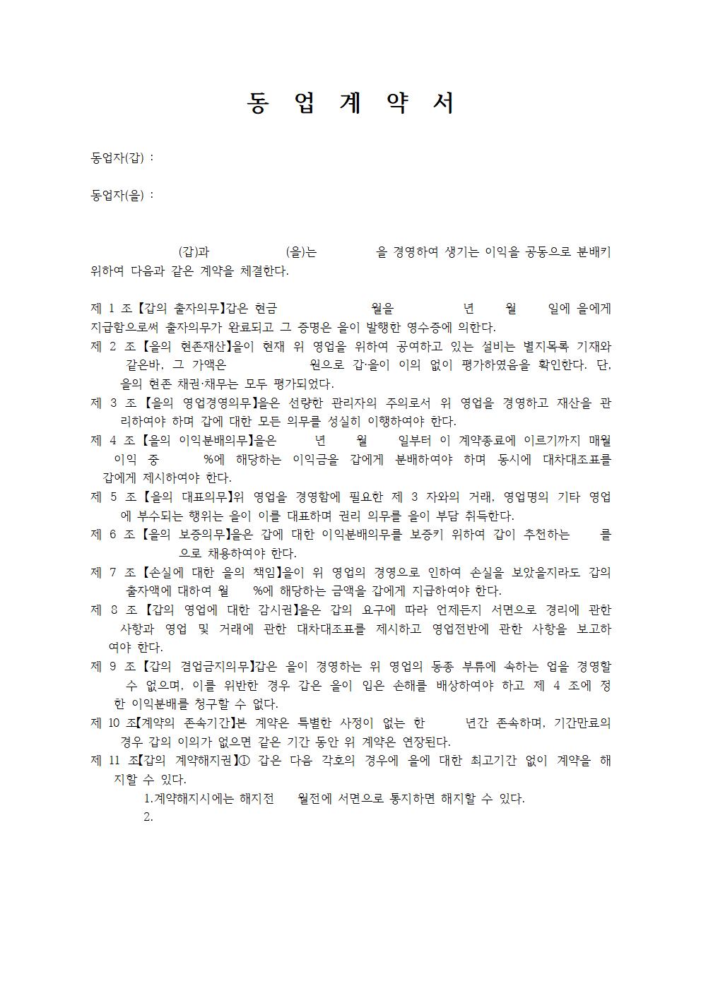 동업계약서 양식 무료다운