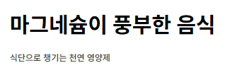 | 식품명 | 마그네슘 함량(mg) | 비고 |