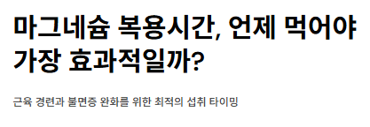 - 위장 장애 방지: 마그네슘은 농도에 따라 위 점막을 자극하거나 설사를 유발할 수 있습니다. 음식물과 함께 복용하면 이러한 부작용을 최소화할 수 있습니다.