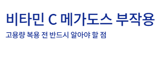 비타민 C 메가도스는 단기적으로 체감 효과가 있을 수 있지만, 위장 장애·신장 결석·철분 과다·혈당 오류 등 다양한 부작용 위험이 존재하므로 장기간 고용량 복용은 신중해야 합니다.