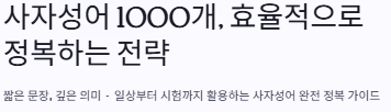 방대한 양의 사자성어 1000개를 정복하기 위해서는 '전략'이 필요합니다.