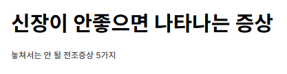 신장이 안좋으면 나타나는 증상들은 일상적인 피로와 비슷해 보일 수 있어 방치하기 쉽습니다. 하지만 당뇨나 고혈압을 앓고 있는 분들이라면 이러한 증상을 더욱 엄중하게 받아들여야 합니다. 신장은 망가지기 전에 지키는 것이 유일한 치료법입니다.