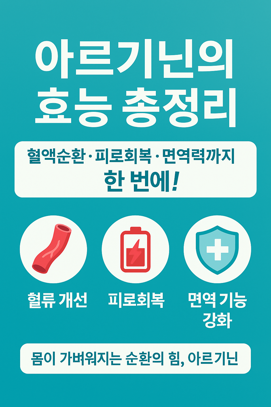 아르기닌은 단순한 보충제가 아니라, 혈액순환·피로회복·면역력 강화·호르몬 분비까지 관여하는 중요한 아미노산입니다.