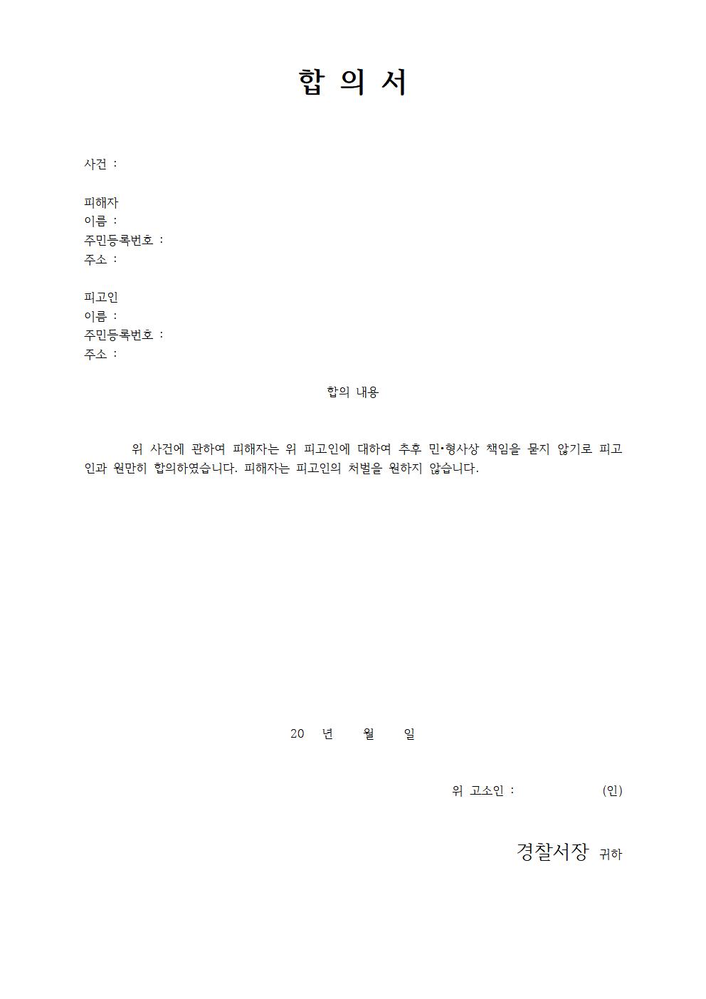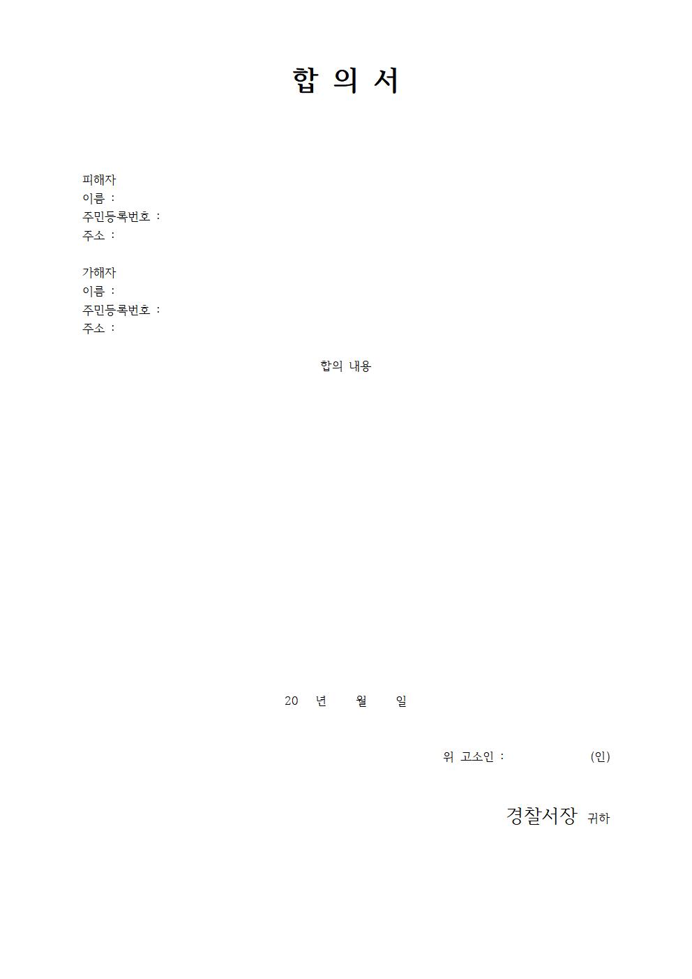 합의서 양식 무료 다운로드